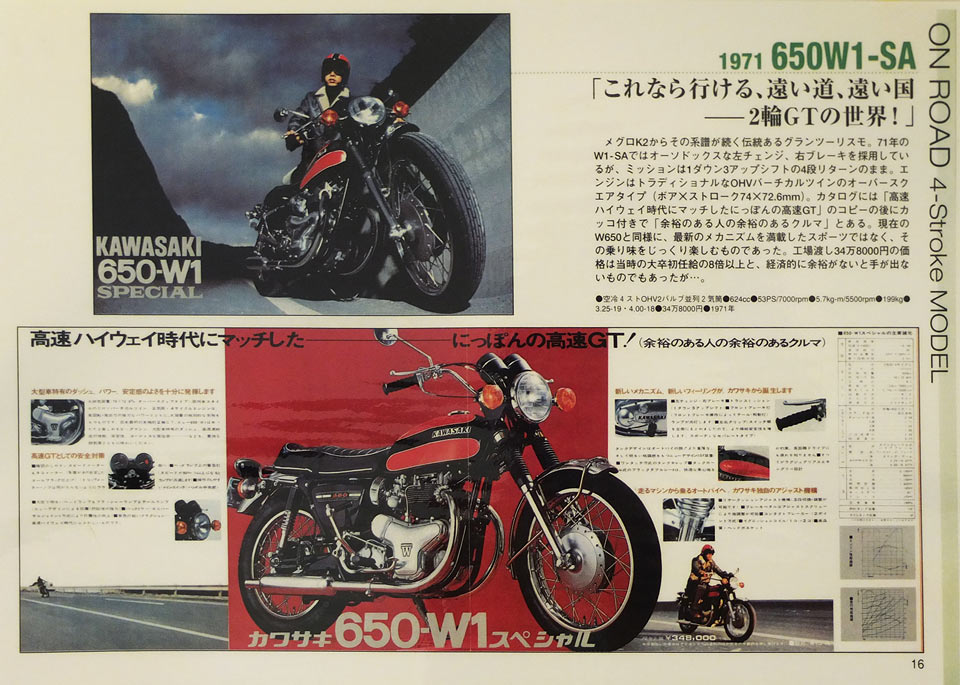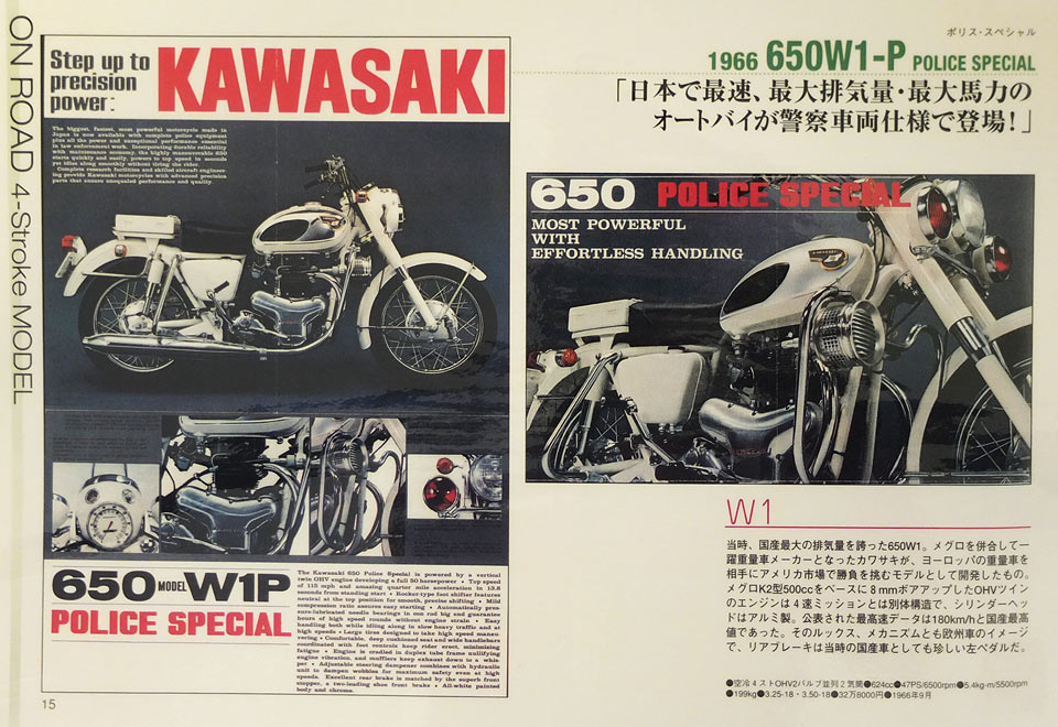 Kawasaki W1-P Police Werbeprospekt | Kawasaki W1-SA Werbeprospekt von 1971 |