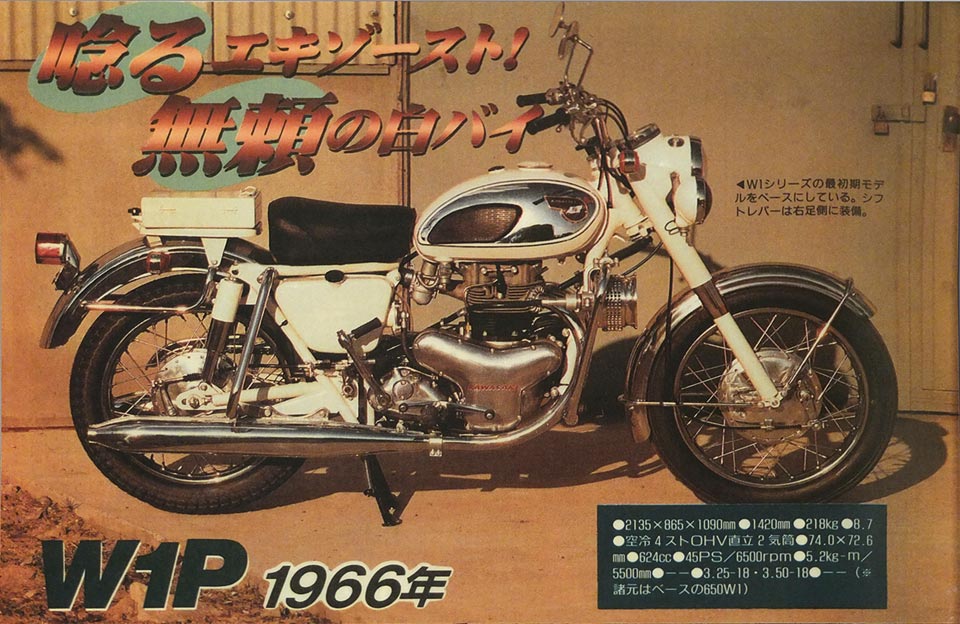 Die erste Kawasaki W1 kam 1965 mit dem 650 cc Parallel Twin in Japan auf den Markt, etwas später war sie, weil dafür konzipiert, in Amerika zu bekommen. Unbestätigten Berichten zu Folge wurden 1965 einige Exemplare kostenlos an die amerikanische Polizei geliefert. In Europa war sie zu bekommen, aber leider nicht wirklich populär. Über Detlev Louis konnte man die Kawasaki W1 bzw. W2-SS in Deutschland beziehen. Nicht ganz nachvollziehbar ist allerdings, wie viele bezogen wurden, mehr als 5 Motorräder der W-Reihe? Wer weiß.